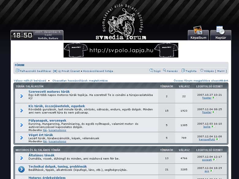 Az svmédia fóruma Magyarország legnagyobb és legaktívabb online SV-s motoroscsapata: a nyomatékkal élők baráti közössége. Túrák, találkozók, pályanapok, képgaléria, eseménynaptár.
